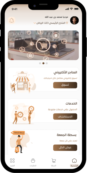 اختر القسم المناسب، أضف المنتجات أو الخدمة لعربة الطلب، ثم تابع العروض والتنفيذ حتى التسليم النهائي.